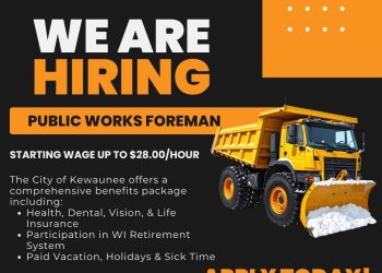 The City of Kewaunee is hiring for a Public Works Foreman! Head on over to…