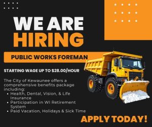 The City of Kewaunee is currently seeking applicants for the position of Alderman for the…